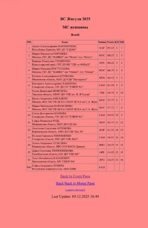 После короткой программы она возглавила таблицу, а чистый и собранный прокат произвольной программы позволил ей надёжно удержать лидерство и подтвердить высокую форму.