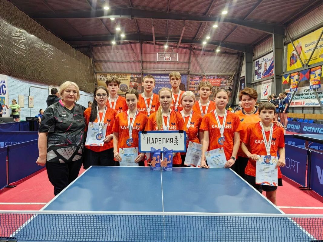 Карельские спортсмены успешно выступили на Первенстве Северо-Западного федерального округа России по настольному теннису среди юниоров и юниорок до 20 лет, которое прошло с 4 по 9 февраля 2026 года в п. Сиверский (Ленинградская область).
