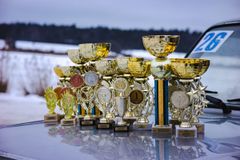 Кубки, которые блестят на фоне зимнего заката.
