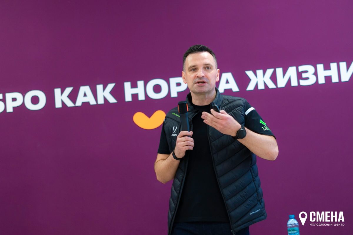Заместитель директора Центра спортивной подготовки Александр Анатольевич Баканчук выступил перед участниками и рассказал о спортивном волонтёрстве, подчеркнув важность добровольцев в организации соревнований и крупных мероприятий.