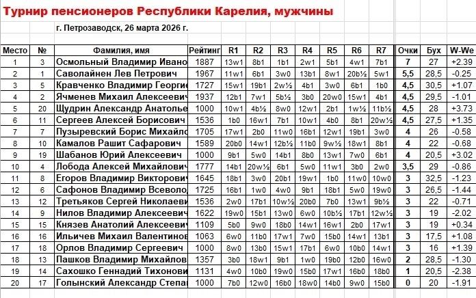 26 марта в Петрозаводске состоялся республиканский шахматный турнир среди пенсионеров Республики Карелия. Соревнования прошли на базе спортивной школы № 2 и объединили участников из разных уголков региона.