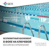 - Безлимитный абонемент в бассейн на 1 месяц за 3000 рублей (часы посещения: понедельник-суббота 7:45 - 14:15, 19:45 - 21:15; воскресенье 7:45 - 21:15)